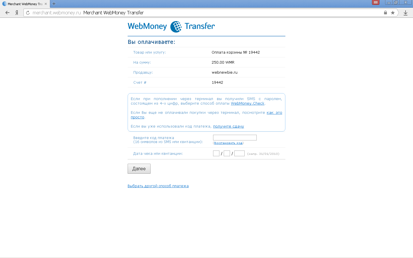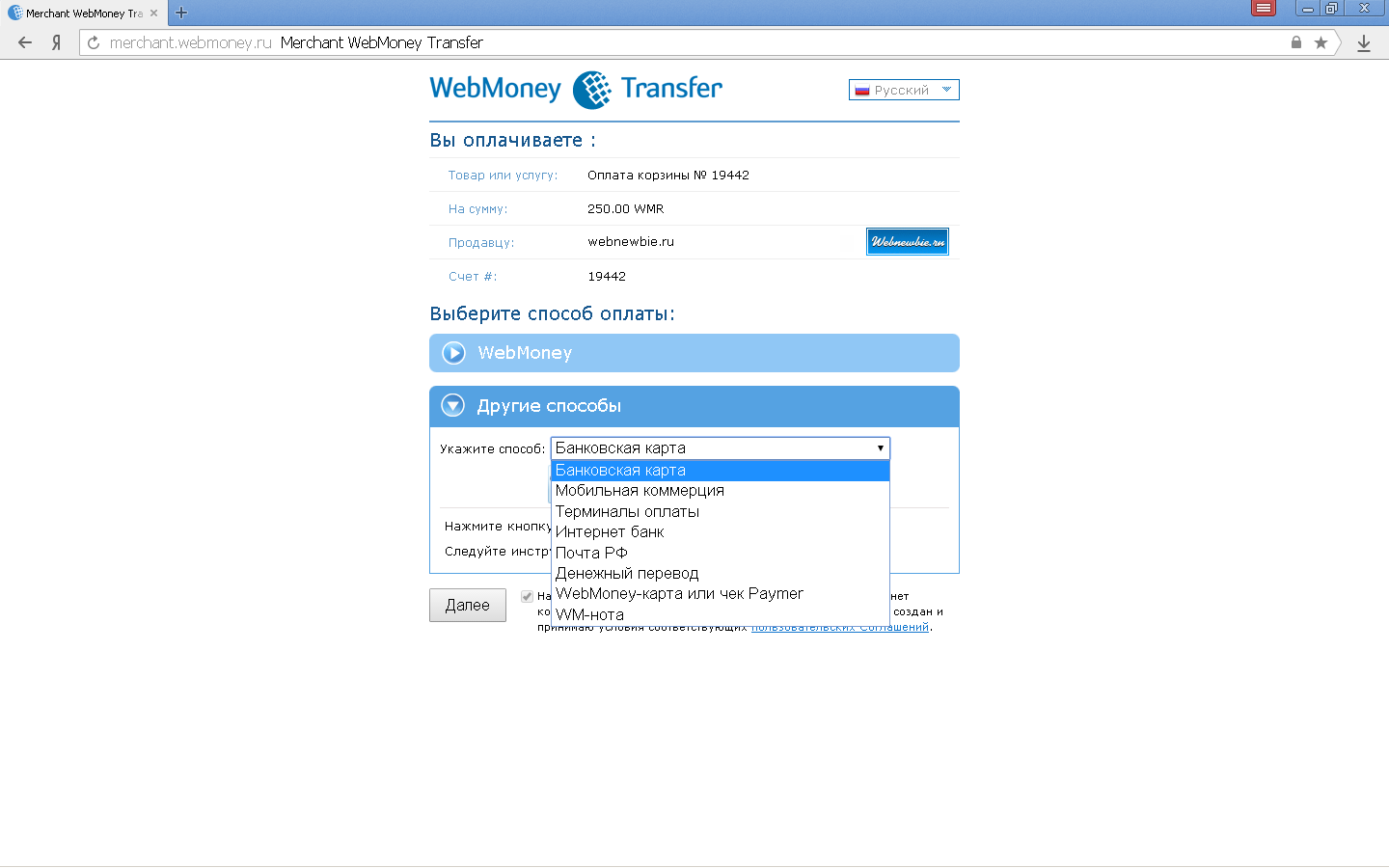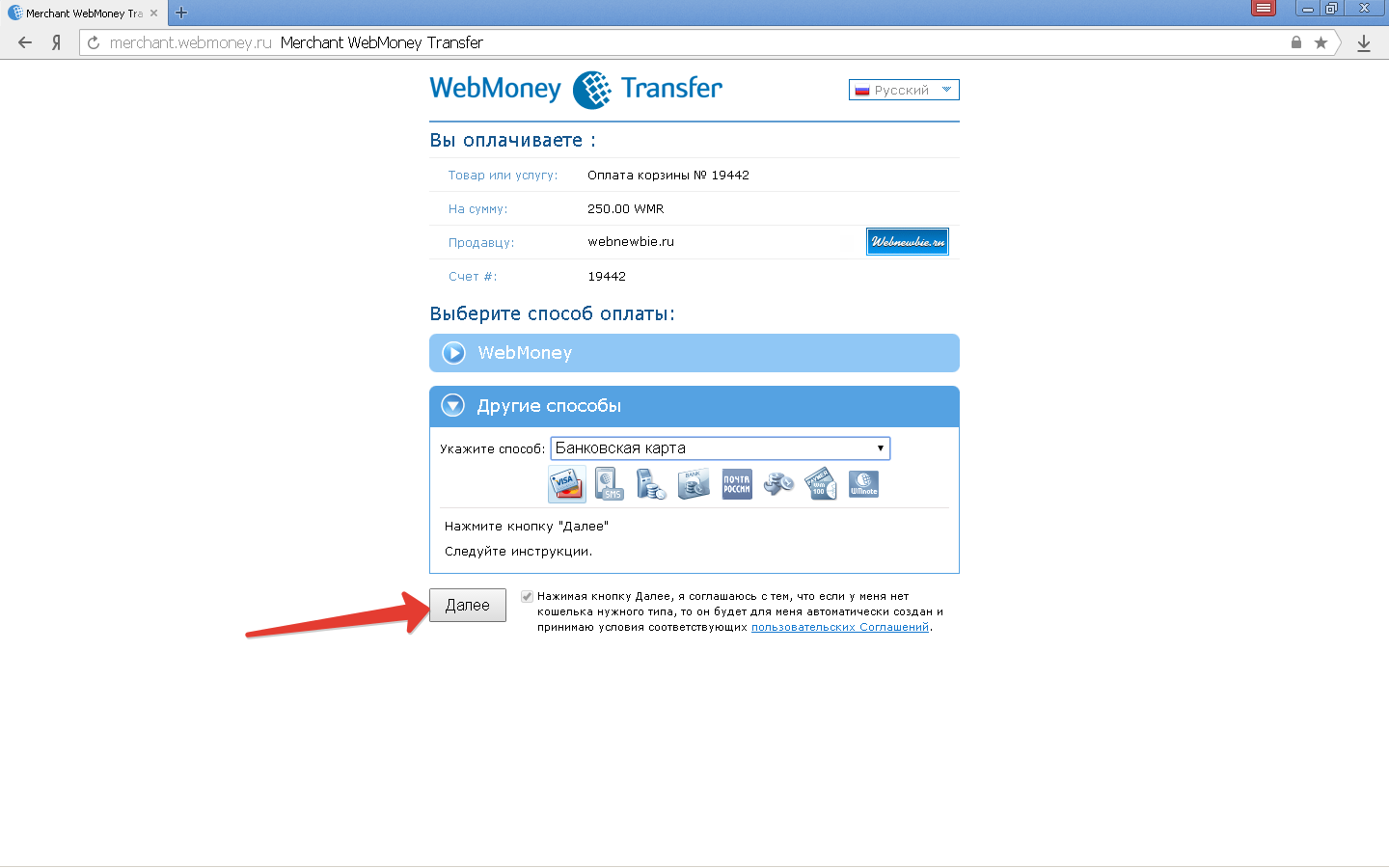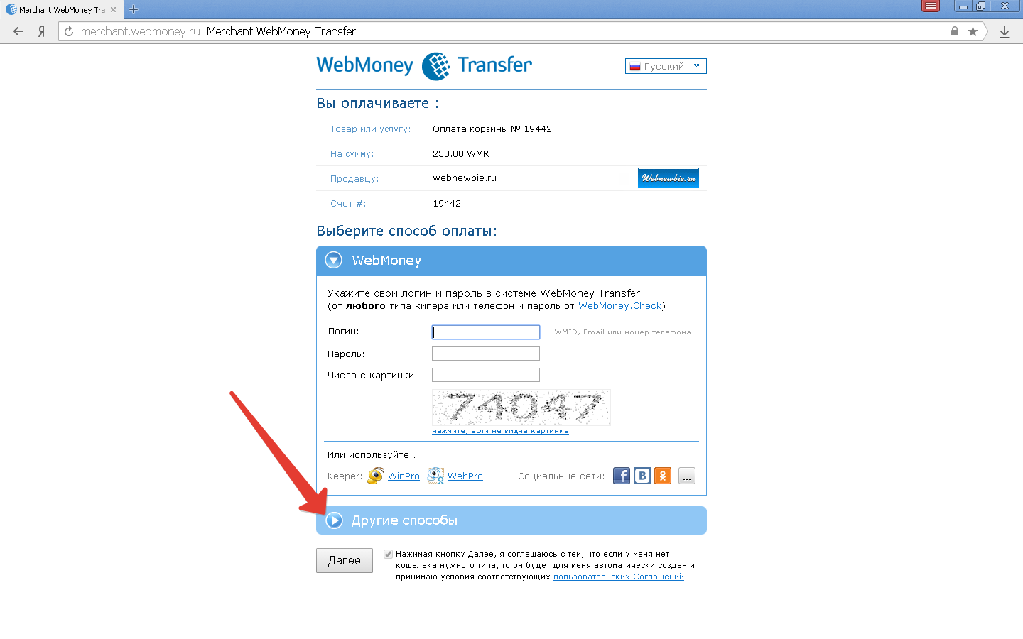Прием платежей осуществляется на WMR(рублевый) кошелек WebMoney. Для выбора дополнительного способа оплаты выберите пункт Другие способы